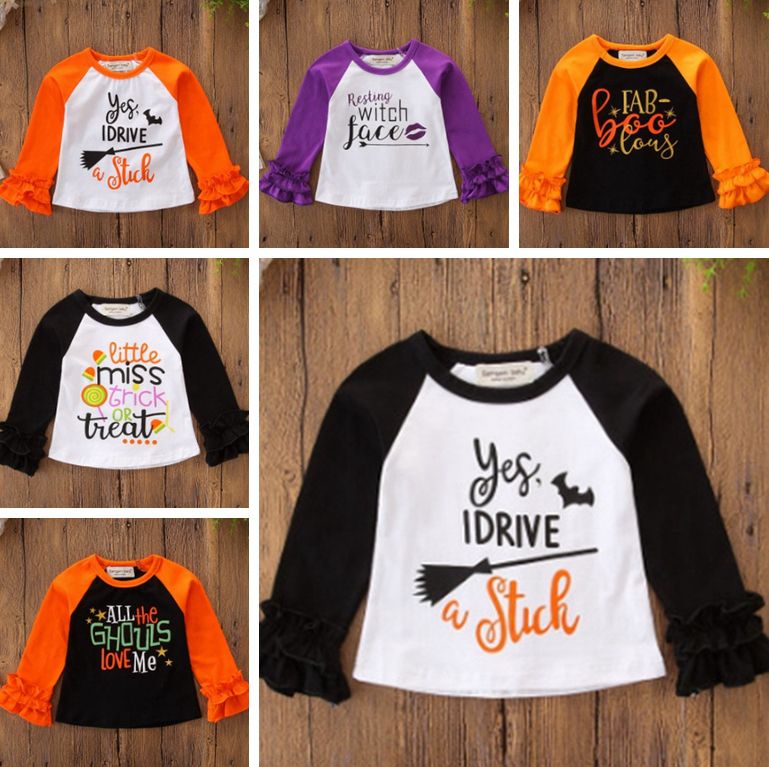 Best Halloween Girls Shirts Toddler Baby Girl Ruffles Blouse T Shirt Long Sleeves Children Tops Halloween Clothes Kids Clothing 8 Designs Dw4260 Under 5 51 Dhgate Com